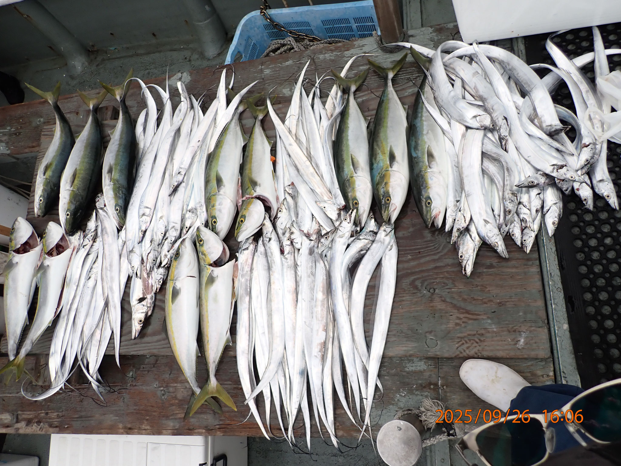 【釣果】お客様4名 メジロ、67センチ前後、19匹。 ハマチ、50センチ2匹。 タチウオ、70~110センチ、130匹。 サバ、50センチ、1匹。...