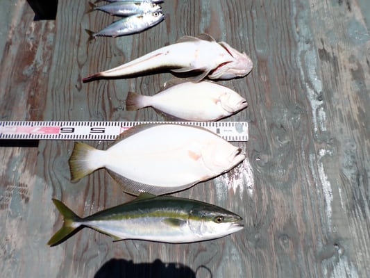 7月 20日, 2023年 今日は、近場です。 今日は、お客さんが無かったので、ちょっと近場の様子を見に行ってきました、船長のみです。 【釣果午前中のみ】朝一の餌釣り、アジ5匹小さば、7匹釣れました、その餌で関空連絡橋の下で、釣ってみました。 ヒラメ、40~57センチ、2匹、ハマチ、59センチ、1匹、マゴチ、55センチ、1匹。でした。メジロも来ましたが、取れませんでした、暑かったです。 tagPlaceholderカテゴリ: