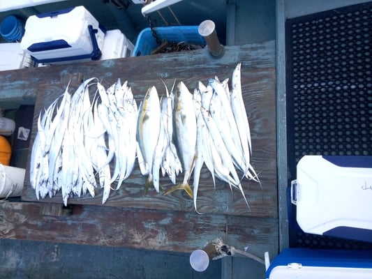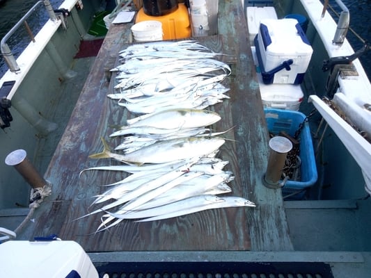 9月 18日, 2023年 今日も、飲ませと太刀魚です、 【釣果】ブリ、83センチ、1匹、メジロ、78センチ、1匹、太刀魚、70~105センチ、196匹。 飲ませの青物は、時合少なく、2匹でした、バラシも2回でした、目に前でさようならは、つらいですね、太刀魚は連日、良型交じりで好調に連れてます、お疲れ様でした、有難う御座いました。 tagPlaceholderカテゴリ: