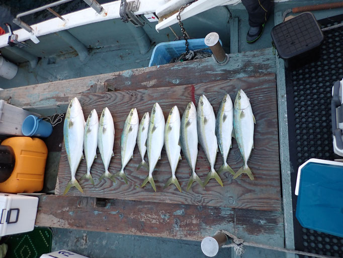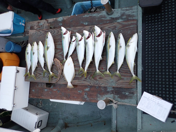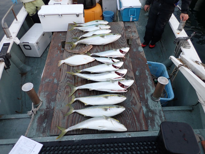 12月 29日, 2023年 今日も、飲ませ1本です、ブリ好調です。 【釣果】ブリ、80~86センチ、4匹。 メジロ、70センチ前後17匹。 ハマチ、50センチ、2匹。 ヒラメ、55センチ、1匹。 マゴチ、50センチ、1匹。 今日も、飲ませの青物絶好調です、今日のブリ、良く肥えてました、天気も最高、良い竿収めできたのでしょうと、思います。お疲れ様でした、有難う御座いました。写真2部にしました。 tagPlaceholderカテゴリ: