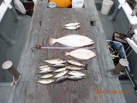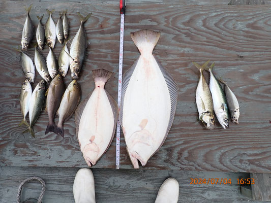 大ヒラメ75センチと、食べごろサイズをゲット、でした、お疲れ様でした。有難う御座いました。
