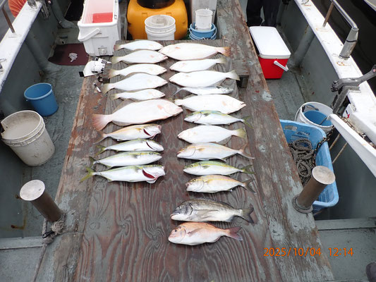今日は、時折小雨が降りましたが、さほど釣りには影響はなかったです、餌の小あじ、良く釣れました、潮の時合の時は、連発の釣果でした、まだまだこれからでしょう、お疲れ様でした、有難う御座いました。