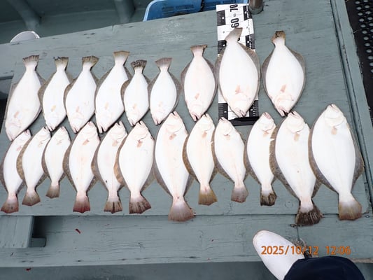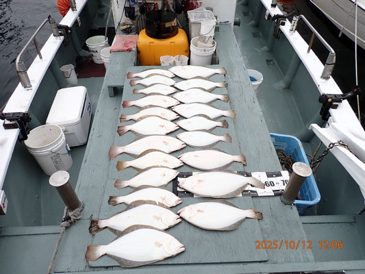 10月 12日, 2025年 今日は、関空ヒラメ便です、 【釣果】お客様3名と船長。 ヒラメ、45~57センチ、21匹。 今日は、ヒラメもご機嫌で、お客様全員、複数安打です、いい天気になって良かったですね、お疲れ様でした、有難う御座いました。 tagPlaceholderカテゴリ: