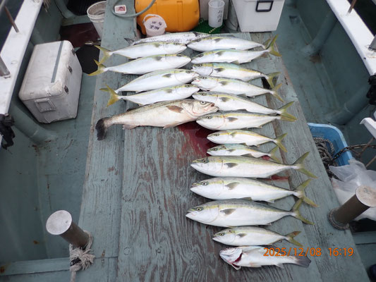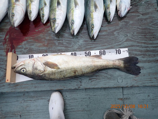 12月 08日, 2025年 今日も、飲ませとひらめ狙いです、 【釣果】 メジロ、73センチ前後、12匹。 ハマチ、50~60センチ、4匹。 スズキ、83センチ、1匹。、 サゴシ、73センチ、1匹。 クログチ、40センチ、1匹。 今日も、餌釣り、順調です、朝から飲ませつりです、1匹目が釣れたのは、8時半ごろでした、其のあと、ボチボチと釣れました、昨日より、厳しかったです、御疲れ様でした、有難う御座いました。 tagPlaceholderカテゴリ: