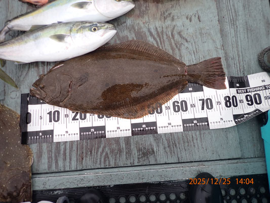 12月 25日, 2025年 今日は、飲ませ1本です、大ヒラメ釣れる。 【釣果】 ヒラメ、55センチ~80センチ、2匹。 メジロ、74センチ前後、16匹。 ハマチ55センチ、1匹、 アコウ、30センチ1匹。 今日は、天気が雨で、午後風が強くなる予定での、出船です、午前中が勝負です、皆さん小雨の中頑張って下さいました、大ヒラメは、船長でした、ごめんね、潮が許斐ときは、ヒラメ狙い、楽しみですね、午後1時、早上がりしました、お疲れ様でした。ありがとうございました。 tagPlaceholderカテゴリ: